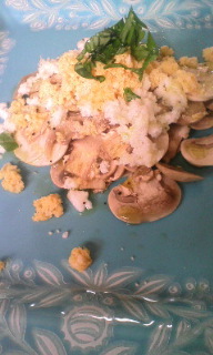 マッシュをレモン汁であえる、卵とハーブで飾り付けをする。